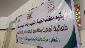 أقام مكتب التربية والتعليم والوحدة التربوية بمحافظةإب صباح اليوم فعالية ثقافية بمناسبة اليوم العالمي للمرأة المسلمة لإحياء ذكرى مولد السيدة فاطمة الزهراء عليها السلام للعام 2021 – 1442