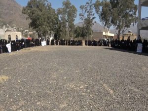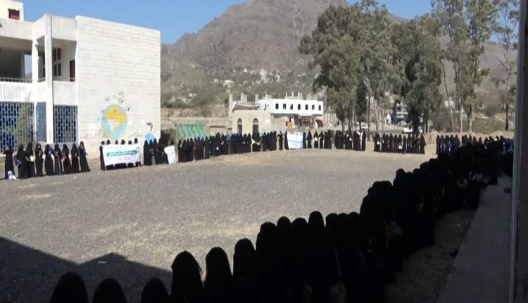 وقفة نسائية في السياني بإب استنكارا لجريمة المرتزقة بحق النساء في مأرب .