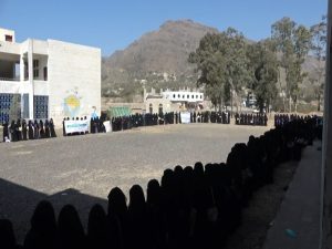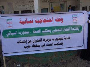 نظم القطاع النسائي في مكتب الصحة بمديرية السياني محافظة إب اليوم وقفة احتجاجية ضد استمرار الحصار واستنكارا للجريمة البشعة التي ارتكبها مرتزقة العدوان باختطاف وتعذيب عدد من النساء في مأرب .