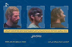 نشر جهاز الأمن والمخابرات اليمنية صوراً وتفاصيل حول أخطر قضية تجسس على الجمهورية اليمنية من قبل الاستخبارات الأمريكية الـ»سي آي إيه» ، وجهاز المخابرات البريطاني ، مكونة من ستة يمنيين و3 ضباط بريطانيين عقدوا لقاءات في مطار الغيضة في محافظة المهرة ، الذي حولته القوات السعودية إلى معسكر تجسسي واستخباراتي يتواجد فيه أمريكيون وبريطانيون وسعوديون.