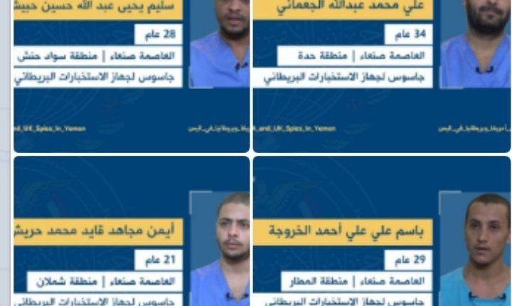 وحصلت صحيفة «الثورة» على نسخ من اعترافات الجواسيس الستة ، وهم باسم علي علي أحمد الخروجة، علي محمد عبد الله محمد الجعماني، سليم يحيى عبدالله حسين حبيش، أيمن مجاهد قايد محمد حريش، المدعو/ عرفات قاسم عبد الله أحمد الحاشدي،و محمد شرف قايد محمد حريش.. حيث شكلوا شبكة تجسسية مع ثلاثة ضباط في جهاز المخابرات البريطانية عبر عميلين يمنيين مسؤولين عن الشبكة.