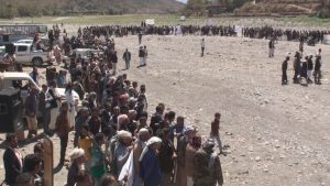 شاهد بالصور .. نكف قبلي حاشد وقافلة مالية وعينية كبرى في مديرية النادرة بإب .