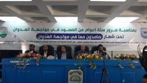 وفي الندوة التي أقيمت بمناسبة قدوم الذكرى السادسة للصمود وتحت شعار ( صامدون معا في مواجهة العدوان ) ، قدمت ثلاث اوراق عمل ، قدم الورقة الأولى الأستاذ الدكتور طارق المنصوب رئيس جامعة إب وتطرق فيها للدور الأمريكي واستهدافه الممنهج للمرأة اليمنية والبرامج والاساليب التي انتهجها العدوان الأمريكي السعودي للسيطرة على المرأة في اليمن والتأثير في مواقفها إما بالترغيب أو الترهيب ، واستعرض جانبا من الإعتداءات والإنتهاكات التي تعرضت لها المرأة من قبل قوى العدوان وتحديدا في المناطق المحتلة .