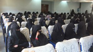 نظم ملتقى الطالبات بجامعة إب بالتعاون مع وحدة التعليم الجامعي ندوة حول دور المرأة اليمنية في مواجهة العدوان السعودي الأمريكي وأدواته .