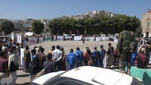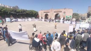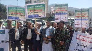 مسيرة حاشدة ووقفة في إب تنديدا باستمرار احتجاز سفن المشتقات النفطية .