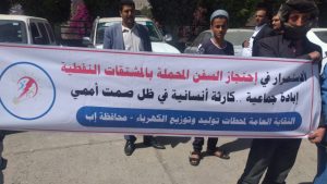 وفي كلمة الاتحاد العام لنقابات عمال اليمن أكد رئيس الإتحاد فرع إب أبا ذر الغشم ، أكد فيها أن الأمم المتحدة شريكة لتحالف العدوان في تشديد الحصار على هذا الشعب رغم تصريحاتها الجوفاء بحجم المعاناة والكارثة الإنسانية نتيجة منع دخول المشتقات النفطية ، محملا الأمم المتحدة المسؤولية الأخلاقية والإنسانية إزاء الجرائم التي يتعرض لها اليمنيون ..