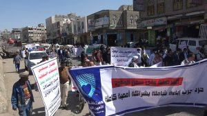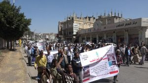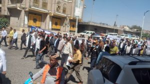 وفي المسيرة التي تخللتها وقفة احتجاجية وأقيمت بالتزامن مع الذكرى السادسة للصمود ، و نظمها فرع شركة النفط بالتعاون مع عدد من المكاتب الخدمية ومؤسسات القطاع الصحي العام والخاص والأتحاد العام لنقابات عمال اليمن ، جدد المشاركون استنكارهم للتواطئ الأممي والتعنت الدولي والصمت على ما يتعرض له الشعب اليمني من حصار خانق تجاوز كل القيم الأخلاقية .