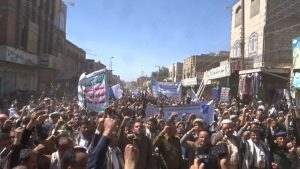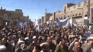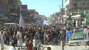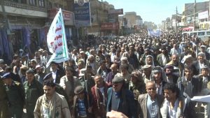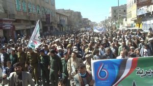 نظم اليوم أبناء مديريات المربع الشمالي بمحافظة إب ( يريم – الرضمة – أجزاء من القفر – السدة – النادرة ) مسيرة جماهيرية حاشدة جابت شوارع مدينة يريم ، إحياءً للذكرى السادسة ليوم الصمود الوطني .