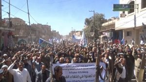 وأوضح بيان صادر عن المسيرة التي حضرها وكيل المحافظة راكان النقيب ، أن الصمود والثبات مستمر وأن أحرار هذا الشعب قادمون للعام السابع بمعنويات أكبر وإصرار أعظم على تحرير كامل الأراضي اليمنية التي لازالت محتلة . مؤكدين جهوزيتهم لمواصلة التصدي والمواجهة والصمود . مجددين وقوفهم وتسليمهم المطلق لتوجيهات قيادة الثورة في استمرار التصدي للعدوان أو السلام المشرف القائم على حماية حق هذا الشعب في التحرر والإستقلال.