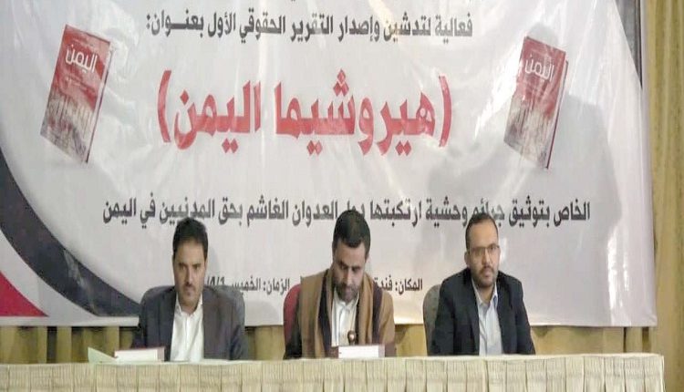 من جانبه لخّص مسؤول مركز الرصد والتوثيق في الدائرة القانونية والحقوقية بالمكتب السياسي لأنصارالله أحمد أبو حمرا، ما ورد في تقرير (هيروشيما اليمن) منذ بدء العدوان في 26 مارس 2015م، حيث شنت الحرب على الشعب اليمني عن طريق أدواته الإقليمية السعودية والإمارات ومن ورائهما الولايات المتحدة الأمريكية والكيان الصهيوني وعلى امتداد جغرافيا الجمهورية اليمنية.