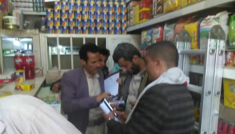 دشن مكتب الصناعة والتجارة بمحافظة إب حملة تفتيش ورقابة على الأسعار والسلع المنتهية والمهربة في مدينة القاعدة بمديرية ذي السفال .