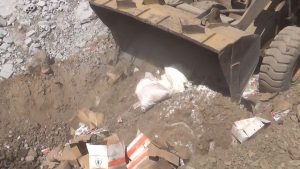 هيئة المواصفات بإب تتلف مواد غذائية منتهية الصلاحية تابعة لمنظمة الغذاء العالمي ..