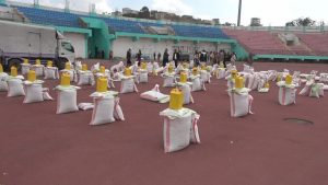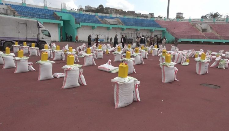 تدشين السلات الغذائية وكسوة العيد لأبناء وأسر الشهداء في مديرية الظهار بإب .
