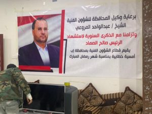 نظم قطاع الشؤون الفنية بمحافظة إب أمسية رمضانية إحياءً للذكرى السنوية لاستشهاد الرئيس صالح الصماد . تحت شعار ( الرئيس الصماد .. رجل المسؤولية ) .
