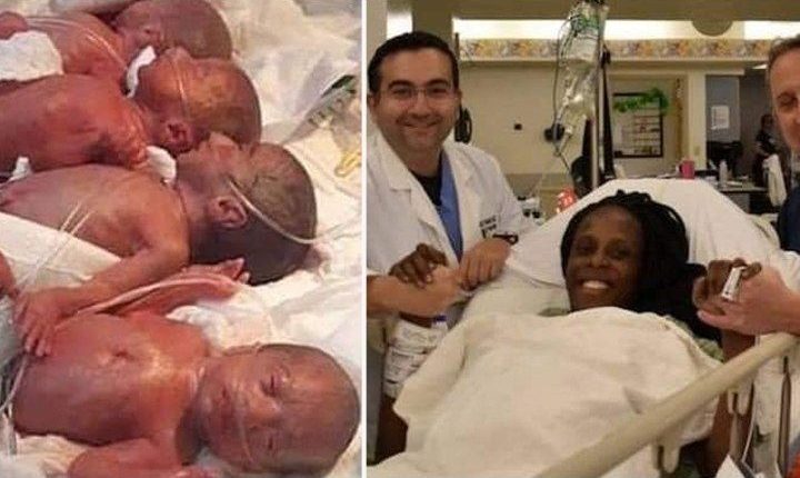 أنجبت سيدة من دولة مالي، بعملية قيصرية (خمس فتيات وأربعة أولاد) بصحة جيدة.