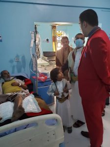 يذكر أنه وأثناء الزيارة تم توزيع حلويات العيد لجميع المرضى والعاملين والمتواجدين في المستشفى .