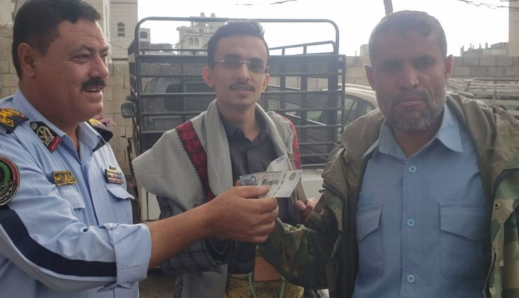 كرمت اليوم وزارة الداخلية بصنعاء جندي مرور في محافظة إب رفض 1000 ريال سعودي قدمها له سائق سيارة كمعونه.