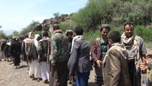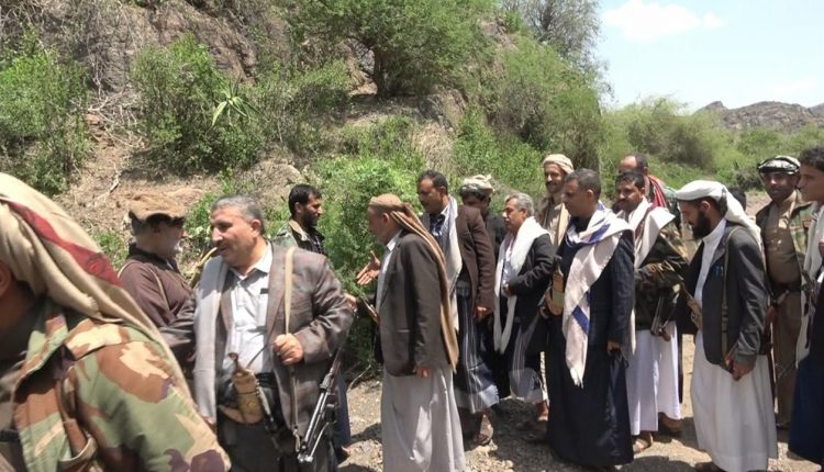 شخصيات اجتماعية من مديرية القفر بإب في زيارة عيدية للمرابطين في جبهات الضالع (صور).