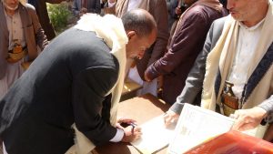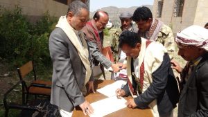 دشن اليوم بمديرية بعدان محافظة إب التوقيع على وثيقة تيسير الزواج والحد من المغالاة بالمهور ..