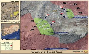 خارطة توضح المساحة الجغرافية التي تم تحريرها في #عملية_النصر_المبين في محافظة البيضاء والتي تقدر ب 100 كلم مربع. On يوليو 15, 2021 Share خارطة توضح المساحة الجغرافية التي تم تحريرها في #عملية_النصر_المبين في محافظة البيضاء والتي تقدر ب 100 كلم مربع. #دقة_صغيرة Share FacebookTwitterGoogle+ReddItWhatsAppPinterestEmail