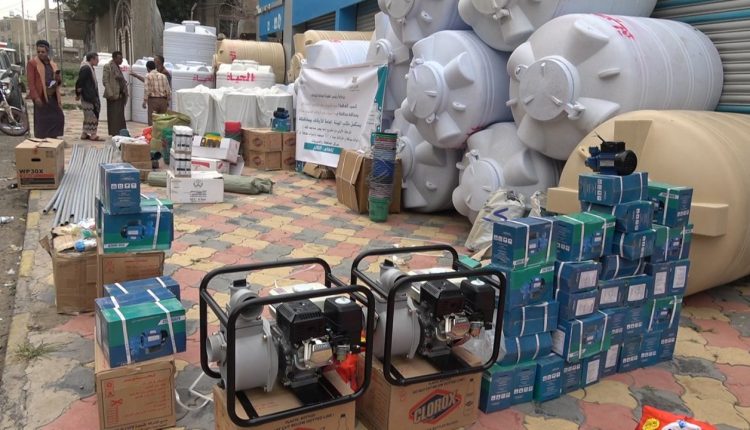 توزيع خزانات مياه وأدوات سباكة ونظافة على المساجد بمديرية جبلة بإب