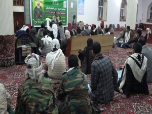 نظم مكتب التوجيه والإرشاد بمحافظة إب ندوة ثقافية بين مغرب وعشاء في جامع البر بمركز المحافظة في ذكرى رحيل العالم الرباني بدر الدين أمير الدين الحوثي.