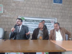 نظم صندوق النظافة والتحسين وفرع الهيئة العامة للأراضي والمساحة والتخطيط العمراني بمحافظة إب اليوم، فعالية خطابية لإحياء يوم عاشوراء ( ذكرى استشهاد الإمام الحسين عليه السلام) .