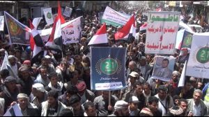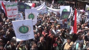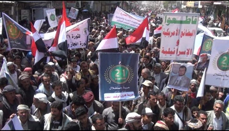 جاء ذلك خلال مسيرة جماهيرية حاشدة لأبناء المربع الشمالي جابت شوارع مدينة يريم ابتهاجا بالعيد الوطني السابع لثورة ٢١ سبتمبر وبحضور وكيلا عبدالحميد الشاهري وراكان النقيب ، أشاروا في بيان مسيرتهم إلى أن التحرر من التبعية واستقلال القرار اليمني وتحرير كافة الأراضي المحتلة تمثل ثوابت ثورية لكافة أحرار هذا الشعب .