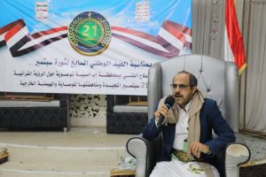 و ألقى مدير عام مؤسسة المياه بالمحافظة سليم البحم كلمة باسم موظفي القطاع الفني أوضح فيها أن ثورة ٢١ سبتمبر ثورة سيادة و استقلال وتحرر من الوصاية .. مشيرا الى ان هذه الثورة التي قطعت ايادي العمالة واذيال الوصاية أعادة الاعتبار لكافة الثورات التي قام بها هذا الشعب . مشيدا بالانتصارات العظيمة لأبطال الجيش واللجان .. داعيا كافة المغرر بهم إلى العودة والاستفادة من قرار العفو العام .