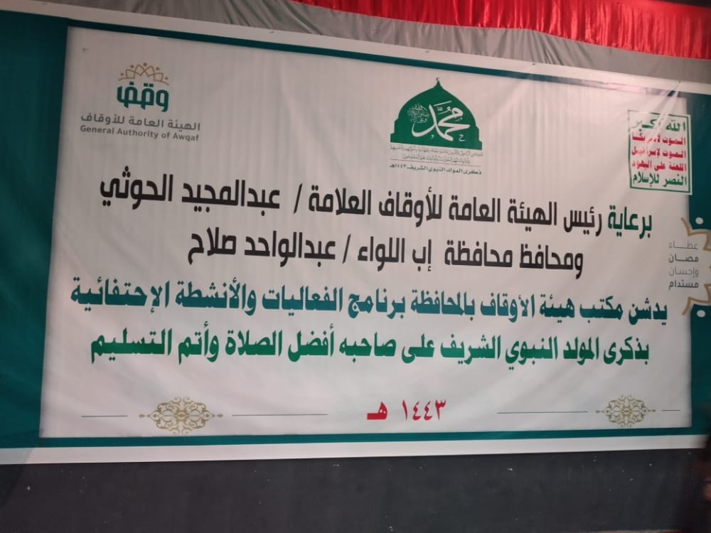 دشن مكتب الهيئة العامة للأوقاف بمحافظة إب اليوم فعاليات وأنشطة المولد النبوي الشريف على صاحبه وآله أفضل الصلاة وأزكى التسليم .