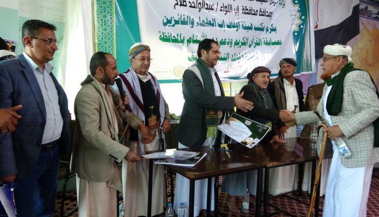 هيئة الأوقاف بإب تكرم كوكبة من العلماء والحفاظ ونزلاء دار الحبيشي للأيتام .