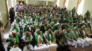 وفي كلمة العلماء أستعرض العلامة ياسين العبادي ملامح من سيرة الرسول الكريم والمقاصد الدينية من الإحتفال بذكرى مولده الشريف .. موضحا أن إحياء هذه المناسبة يعزز من اتربطنا بأعظم قائد عرفه التاريخ لنستمد منه القوة والشجاعة والصمود ضد أبشع عدوان يمارسه أعداء الأمة.
