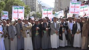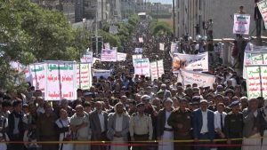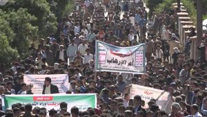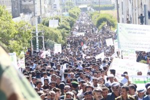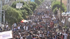خرجت في مدينة إب، اليوم، مسيرة جماهيرية حاشدة تحت شعار “أمريكا وراء التصعيد العسكري والاقتصادي واستمرار العدوان والحصار”.