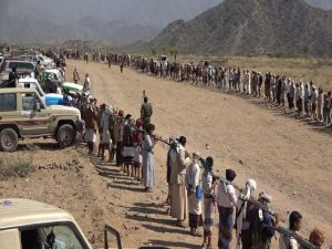 أقيمت في عزلة جمعة بني ساوي بمديرية القفر محافظة إب وقفة قبلية حاشدة ومسلحة بمشاركة عدد من أبناء المناطق القريبة من حزم العدين وكذا مديريتي وصابين بذمار ، تنديدا بقتل الأسرى في الحديدة ومواجهة التصعيد الأمريكي بالنفيير العام إلى جبهات القتال .