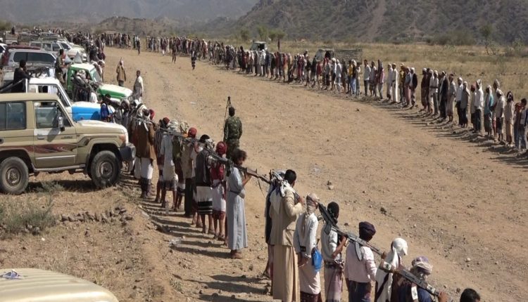 وقفة حاشدة في بني ساوي بإب تنديدا بقتل الأسرى ومواجهة التصعيد بالنفيير العام .
