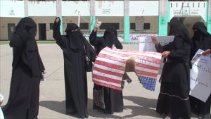 واكدت النسوة المشاركات في الوقفة أن التصعيد الامريكي دليل ان على مدى زيف ادعاءات امريكا بحرصها على السلام.