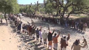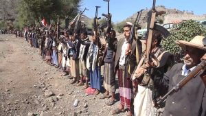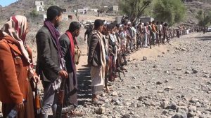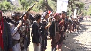 أقام أبناء مديرية حزم العدين بمحافظة إب ، وقفة قبلية حاشدة ومسلحة في عزلة الشعاور ضد التصعيد الأمريكي وتنديدا بقتل الإسرى في الساحل الغربي .