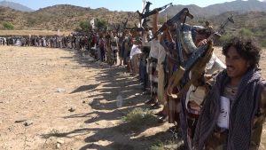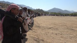 ،،،، وفي عزلة بني سيف السافل بمديرية القفر أقيمت وقفة قبلية مسلحة للتحشيد والتعبئة العامة لمواجهة التصعيد وتنديدا بجريمة قتل الأسرى في الحديدة من قبل مرتزقة العدوان.