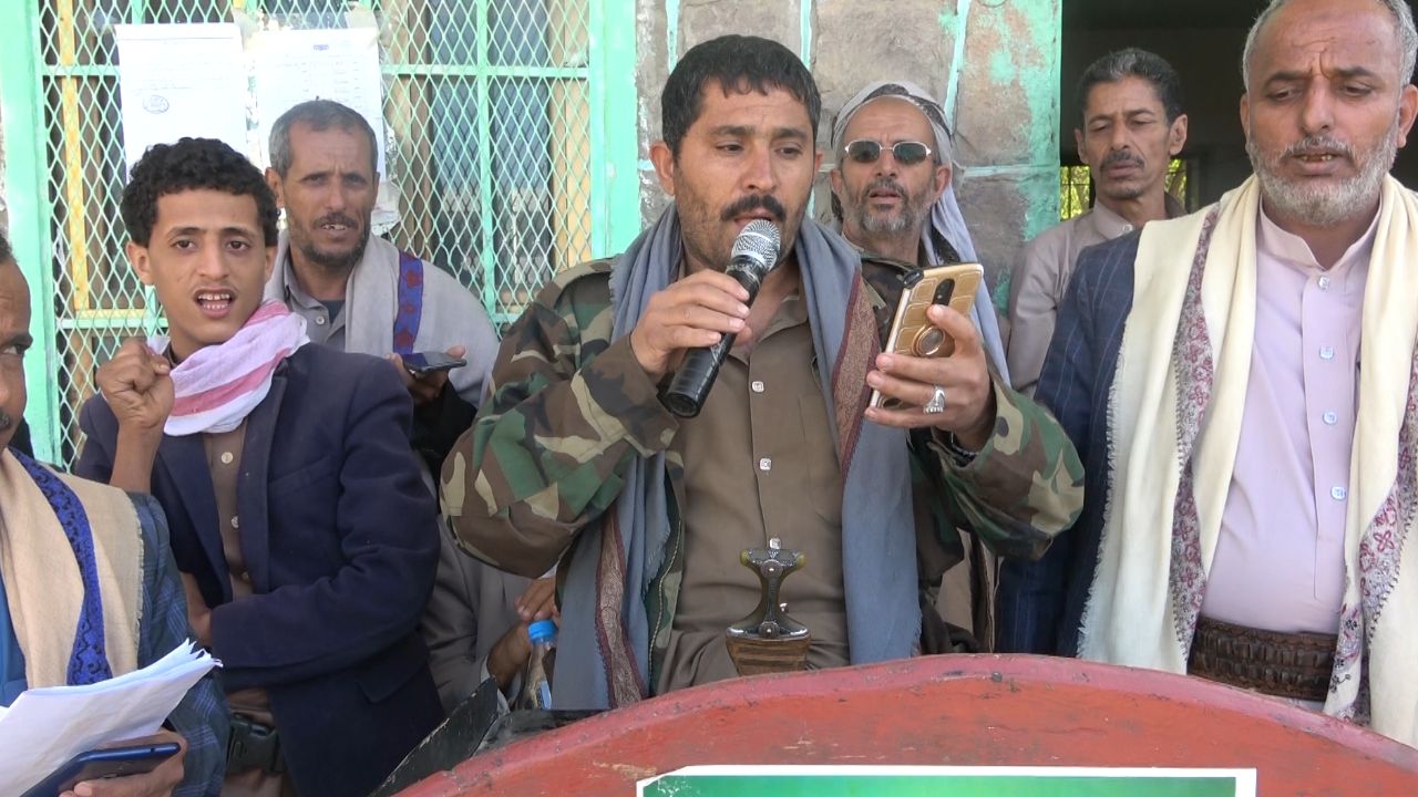 وفي الوقفة بحضور عضو مجلس النواب نعمان البرح ، أعلن المشاركون التعبئة والنفيير إلى الجبهات لمواجهة هذا التصعيد الامريكي، والثأر من مرتزقة العدوان على جرائمهم بحق ابناء وطنهم .