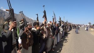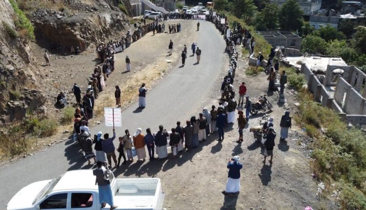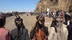 شاهد بالصور : أبناء مديرية مذيخرة بإب يعلنون النفيير العام لمواجهة التصعيد الأمريكي.