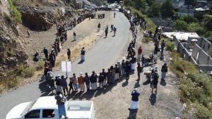 وتخلل الوقفة بحضور وكيل وزارة الإدارة المحلية عمار الهارب ومسؤول القوافل بالجمهورية جبران الرازحي ووكلاء المحافظة حارث المليكي ويحيى القاسمي وقاسم المساوى، قصديتين شعريتين للشاعر علي الهمداني والطفل عبدالله جميل الفقي ….