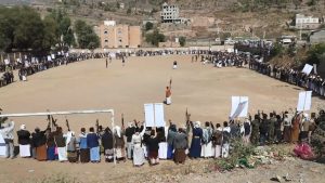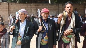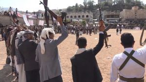 نظم أبناء مديرية العدين بمحافظة إب، اليوم وقفة قبلية حاشدة ومسلحة، للتحشيد ورفد الجبهات لمواجهة التصعيد الأمريكي العسكري والاقتصادي .