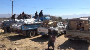 نظم أبناء مديرية حبيش في محافظة إب، اليوم، وقفة احتجاجية للتنديد بالتصعيد الأمريكي واستمرار جرائم وانتهاكات تحالف العدوان بحق الشعب اليمني ، وسيروا خلال الوقفة قافلة عينية مكونة من ألف وستمائة قدح من محصول الحبوب ، وأدوية علاجية يقدر ثمنها بمبلغ ثمانية ملايين ريال، رفدا لجبهات العزة والشرف .
