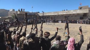 إب: وقفة قبلية مسلحة بالسياني للتعبئة العامة وإعلان النفيير العام