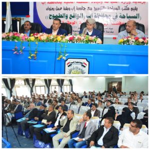 وتطرق رئيس جامعة إب الدكتور طارق المنصوب في كلمته إلى أهمية الحس السياحي المجتمعي وسبل الإستفادة من الدراسات والأبحاث العلمية التي قدمت حلولا لكثير من المشاكل المتصلة بالسياحة.