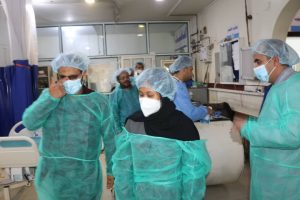 وعلى نفس السياق قام الفريق الزائر وبرفقة إدارة المستشفى بتنفيذ جولة تفقدية لكافة أقسام ومرافق المستشفى، اطلعوا من خلالها عن كثب لمدى جاهزية الأقسام، واستمعوا من القائمين عليها على شرح توضيحي لآلية العمل، ومدى توفير الأجهزة الحديثة المواكبة للتقنيات الطبية المعاصرة.