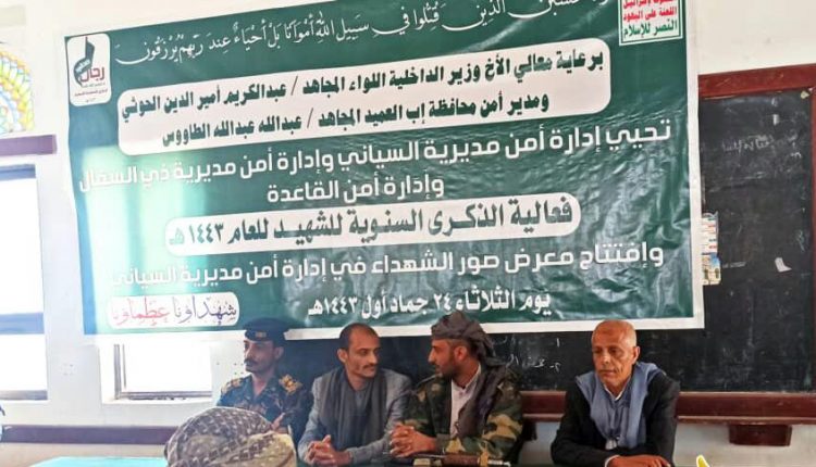 نظمت شرطة مديريتي السياني وذي السفال وشرطة القاعدة بمحافظة إب فعالية ثقافية وخطابية أحياء للذكرى السنوية للشهيد 1443 هجرية.