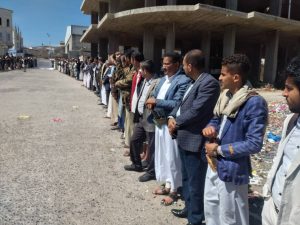 وندد المشاركون في الوقفة بحضور وكيلا المحافظة عبدالحميد الشاهري ويحيى القاسمي ، بالجرائم البشعة التي ارتكبها العدوان بحق السجناء في صعدة واسرة الجنيد في صنعاء واستهداف البوابة الخاصة بالنت في الحديدة وسقوط العشرات من الشهداء جراء الغارات الحاقدة .. مناشدين في بيان وقفتهم ابطال الجيش واللجان والقوة الصاروخية والطيران المسير بمواجهة تصعيد امريكا واسرائيل واحذيتهم من الإماراتيين والسعوديين بتصعيد اكبر في الجبهات وضرب العمق السعودي والإماراتي ..