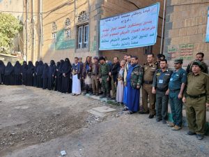 واستنكر المشاركون في بيان وقفتهم بحضور مدير فرع الأحوال المدنية بالمحافظة العميد محمد الحارثي ، القصف الممنهج والهمجي الذي نفذته طائرات العدوان للحي الليبي بصنعاء والسجن الاحتياطي بصعدة وأبراج الاتصالات في عدد من المحافظات وبوابة اليمن الدولية للإنترنت بالحديدة، ما أسفر عن سقوط مئات الشهداء والجرحى من المدنيين بينهم نساء وأطفال ..