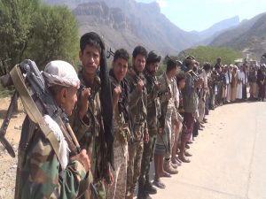 وقفة قبلية في مركز مديرية فرع العدين بإب للتحشيد ضد التصعيد الأمريكي ..